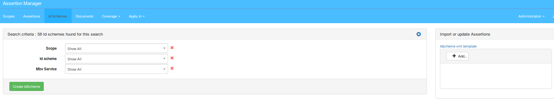 As shown on picture above, the administrator user can create a new IdScheme.