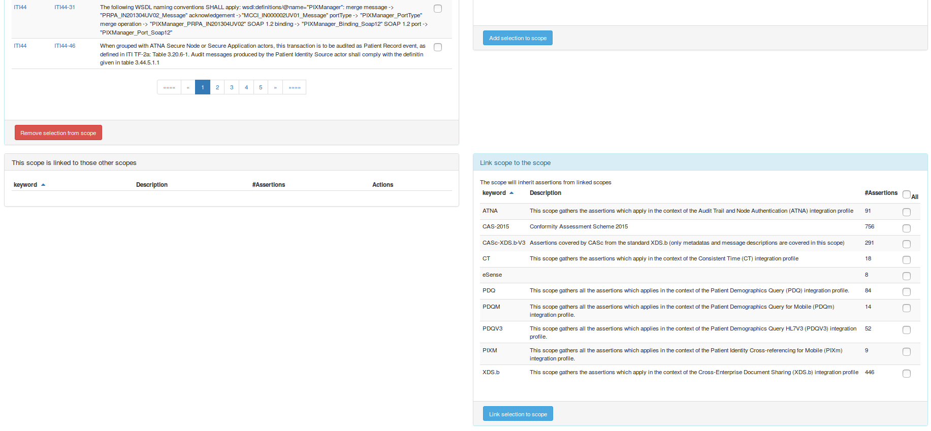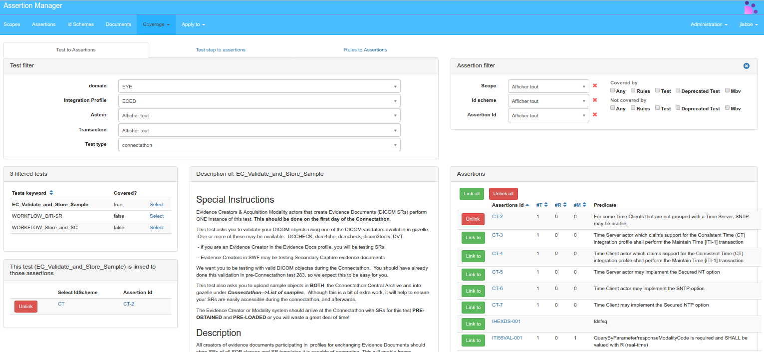 The assertion manager is linked to gazelle Test Management in order to link assertions to test, test steps and technical framework rules.