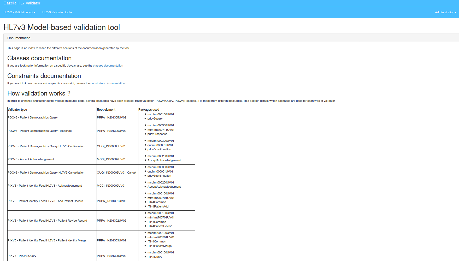 And HL7v3 Validation tool allows user to access to validator documentation: