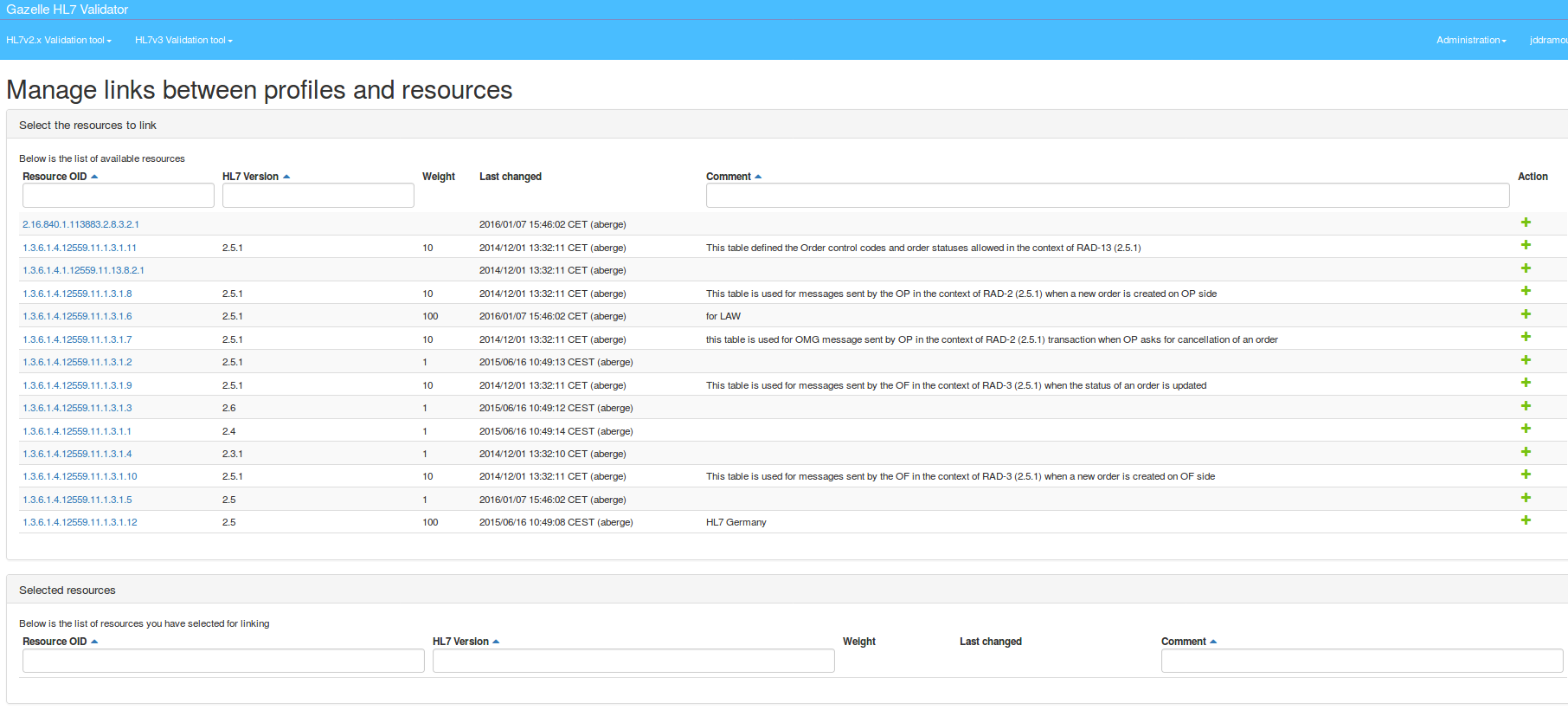 When the tool initializes a validation, it retrieves all the HL7 resources linked to the selected conformance profile. Then, at validation time, for each reference to an HL7 table, it browses the selected resources to extract the set of allowed values. We have defined a mechanism of weight which allow us to tell the application in which order it must browse the resources. Actually, it may happen that you have overridden a table defined in several of the selected resources. The resource is the higher weight will be processed first. HL7 resources defined by HL7 have usually a weight equals to 1.