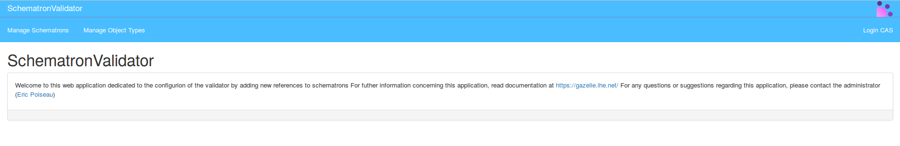 The Web interface Schematron Validator enables the administrator of the application to register new schematrons and update schematrons version: