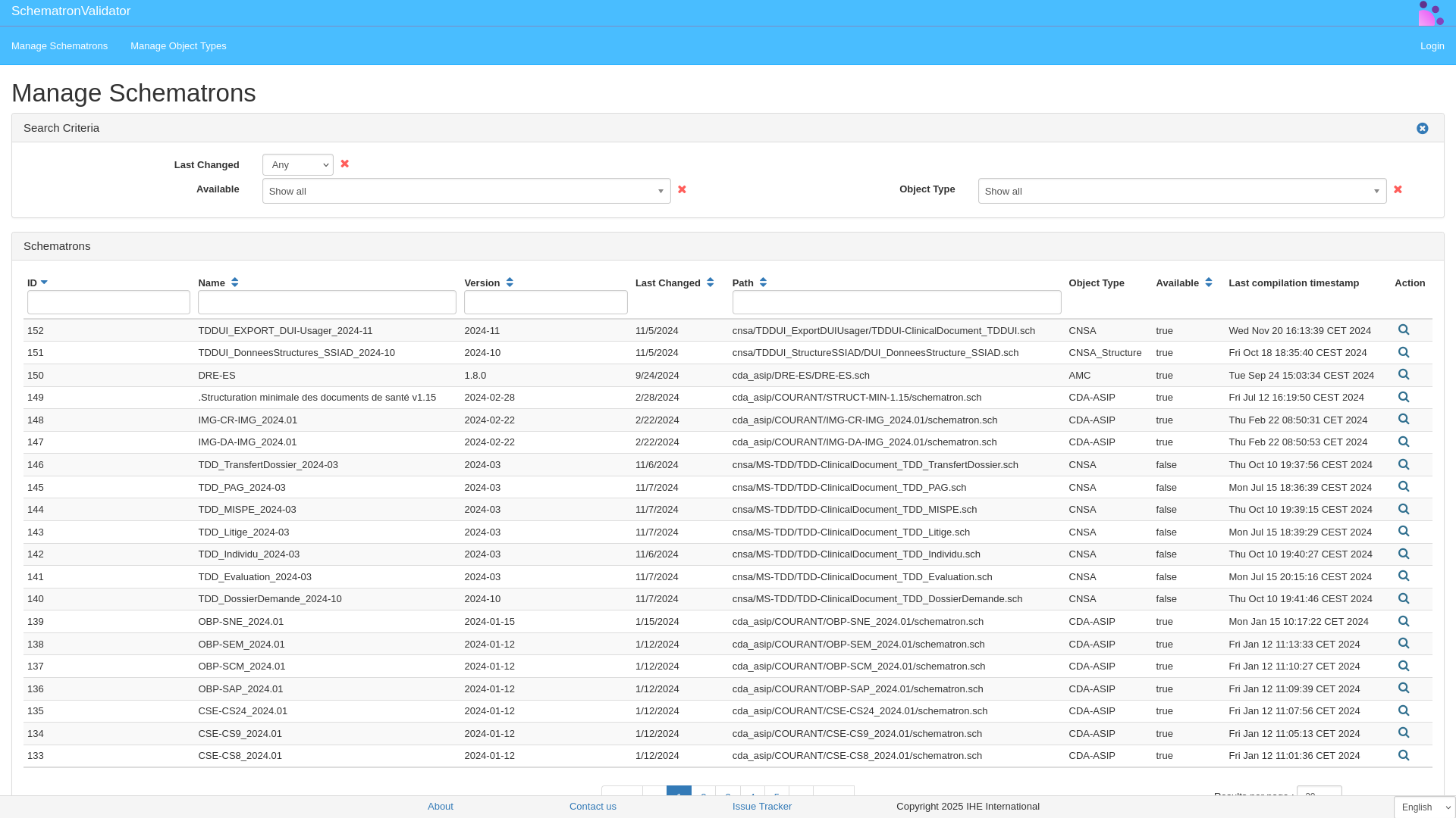 Click on “Manage Schematrons” button to display the list of registered schematrons: